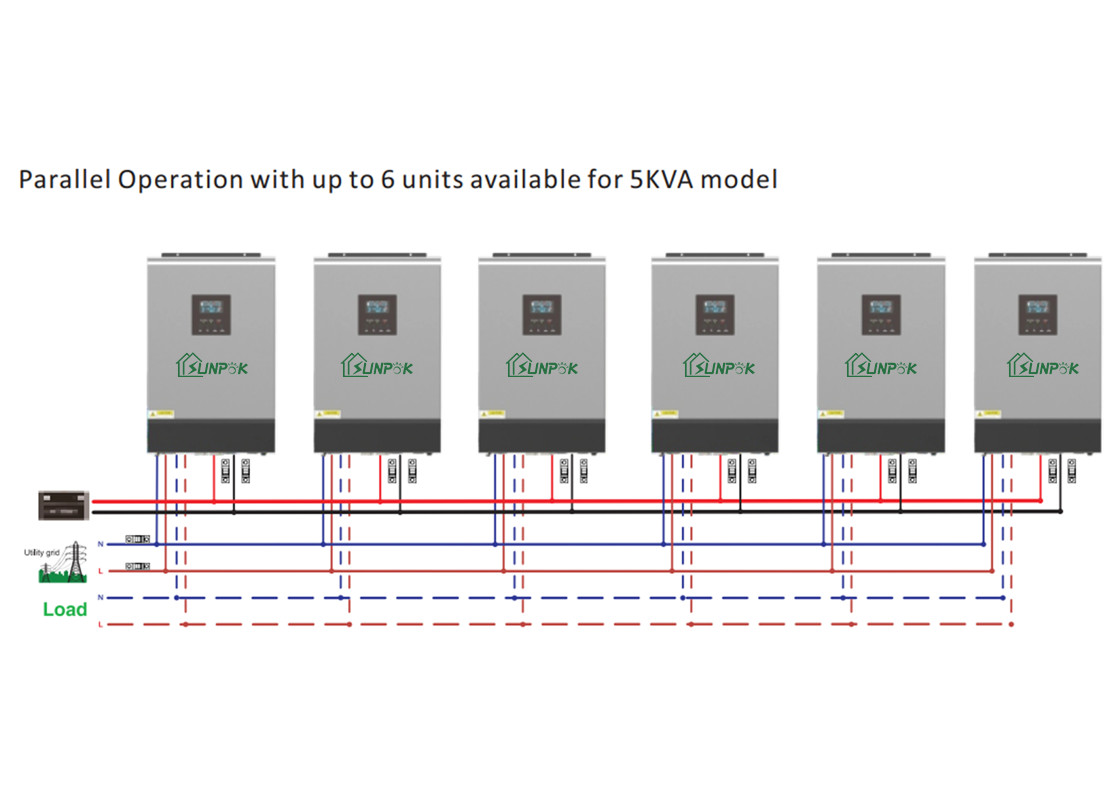 Sunpok 5Kwの単相高周波以外格子インバーターはLED表示と力なしで区域、不安定な力の遊牧的な区域、コミュニケーション基地局、区域、電池の製造業者の島、国境検問所、景色管理オフィス、新聞雑誌売店、電池のパック、等のために適している装備したり、支えるUSB/RS232/RS485/Bluetooth/Dry接触、コンパクト デザインおよびhigh-cost性能を。